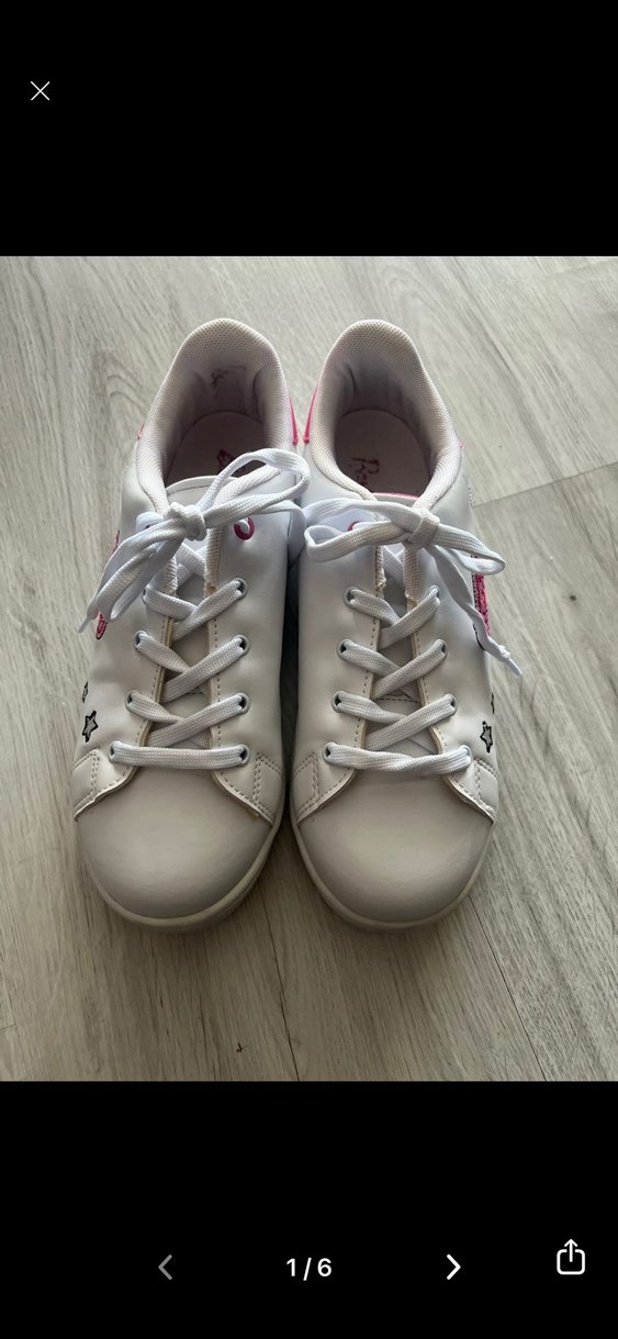 Beyaz, bağcıklı ve nakış detaylı kadın spor ayakkabısı. İnce topuklu ve pastel renkli dokunuşlarla günlük sokak stiline uygundur. Kauçuk tabanlıdır.