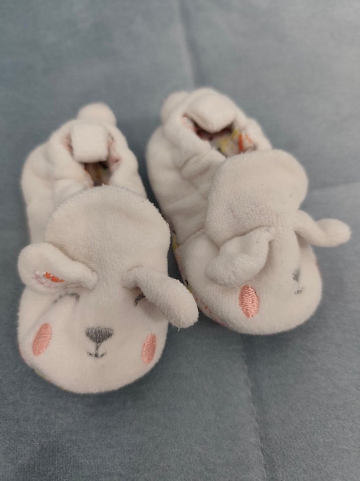 Beyaz nakışlı detaylara ve kürk süslemeye sahip, yumuşak ve sıcak kumaştan kız bebek ev panduf. Rahat ve sade bir tasarıma sahiptir.