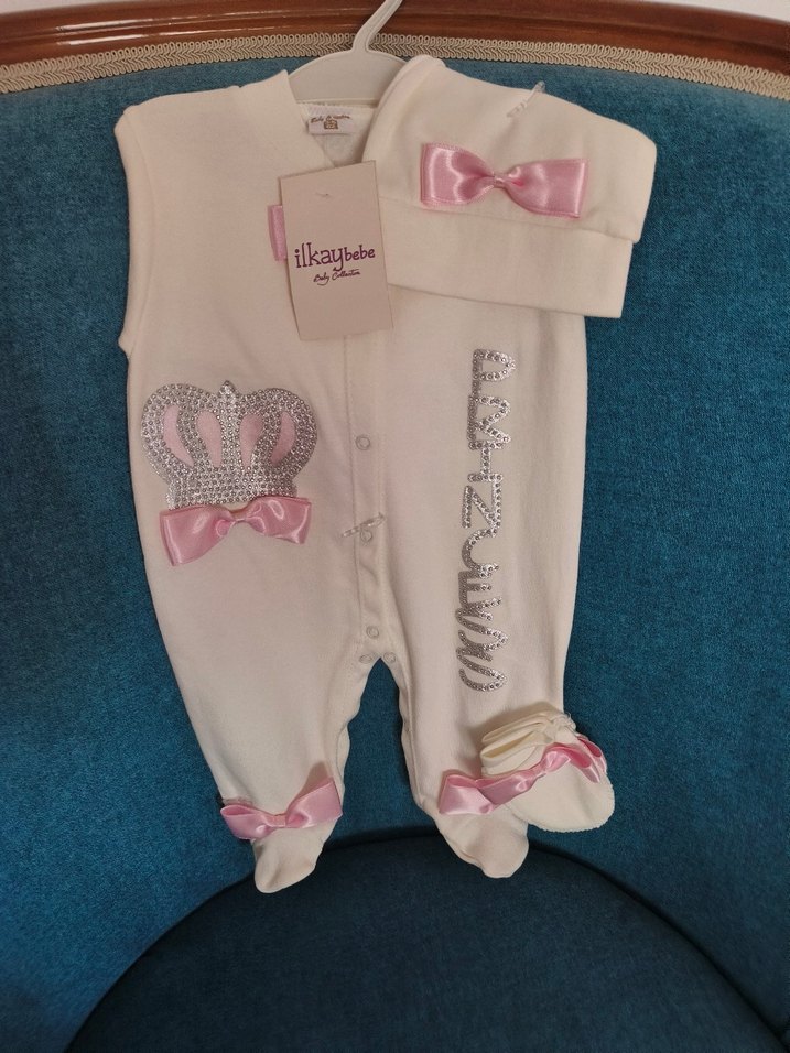 Beyaz Nakışlı Bebek Hastane Kıyafeti