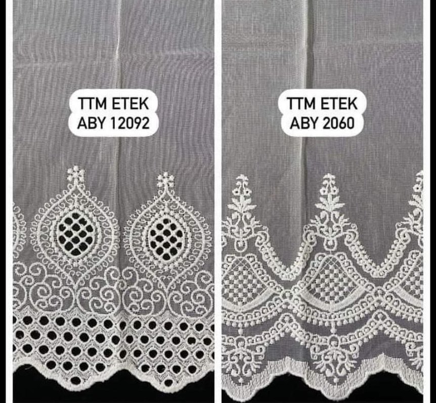 beyaz nakışlı desenlere sahip beyaz perde, geleneksel tarzda detaylı işlemeler içerir.