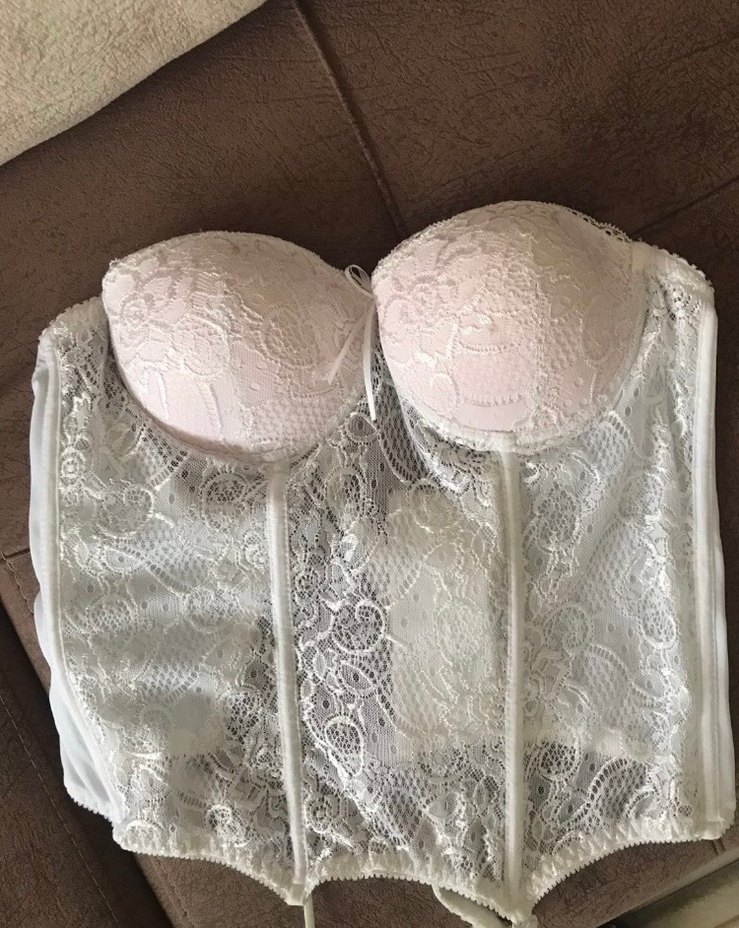Nakışlı detaylara sahip beyaz, bohem tarzda midi uzunlukta Paris esintili bir büstiyerdir.