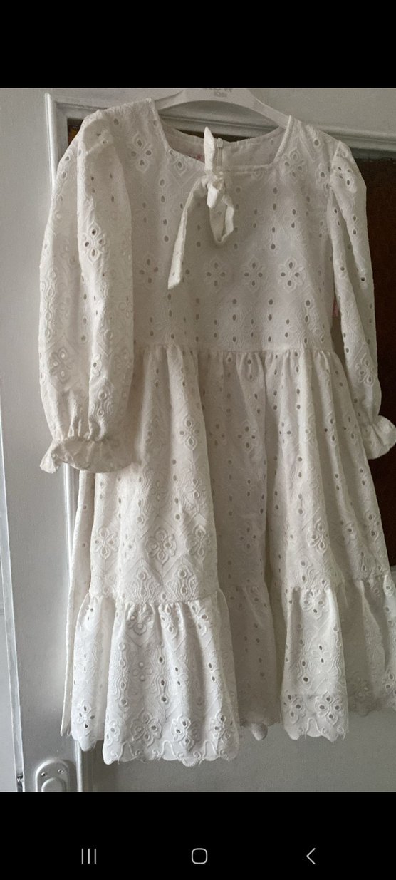 Beyaz Nakışlı Bohem 8yaş Elbise