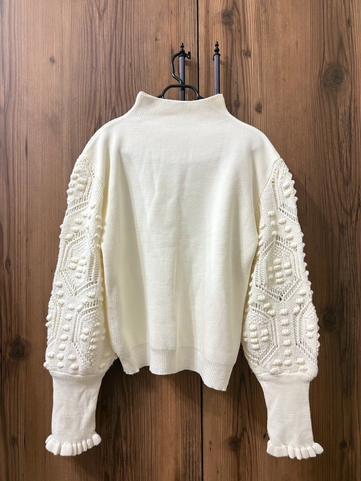 Beyaz renkli, yüksek yakalı ve uzun kollu bu örgü kazak, nakış detaylarıyla bohem ve rahat bir tarza sahiptir. Günlük kullanıma uygundur.