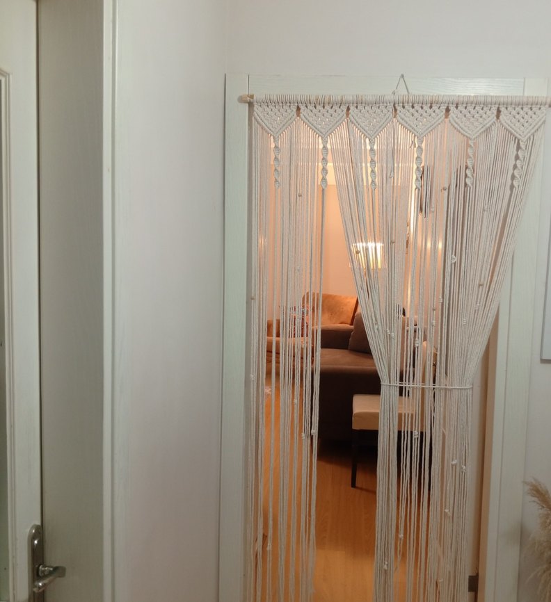 Hafif bohem tarzda, beyaz nakışlı ve ince tasarımlı perde.