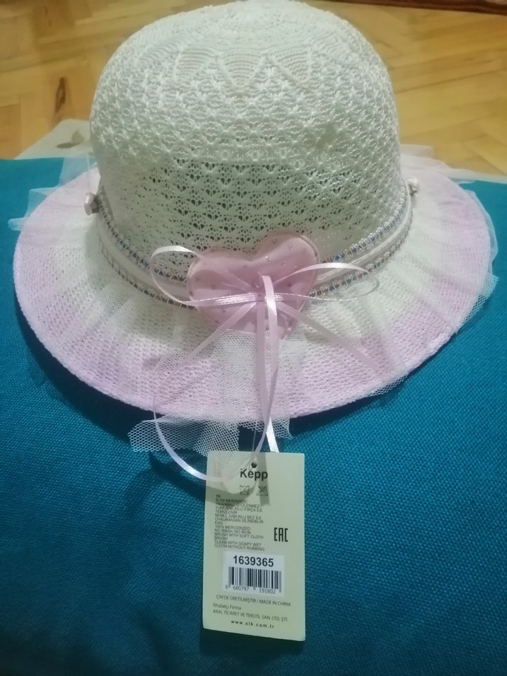 Beyaz renkte, nakışlı desenlere sahip çocuk örgü şapka, pastel pembe fırfır detaylarıyla bohem tarz sunar. Yumuşak dokulu ve zarif.