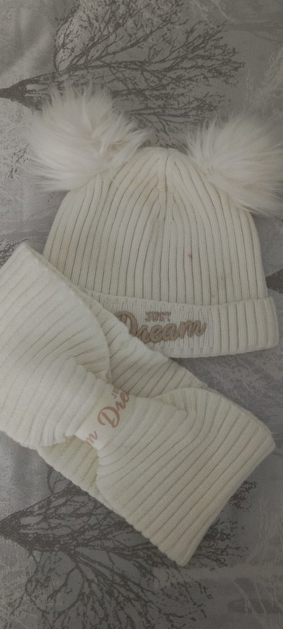 Beyaz Nakışlı Çocuk Triko Bere ve Atkı Seti