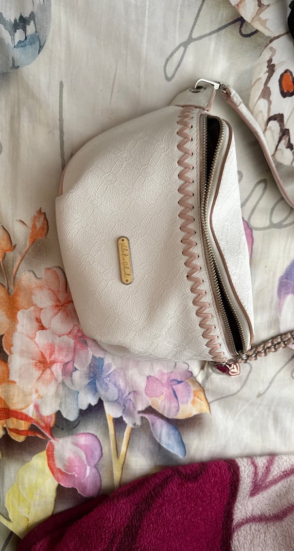 Beyaz renkte, fermuarlı ve nakışlı detaylara sahip deri kadın çantası. Bohem tarzını yansıtan pastel tonlu, günlük kullanıma uygun bir model. Orjinal