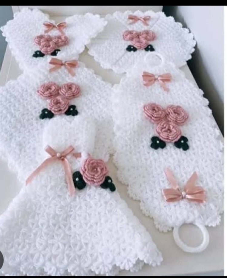 Pembe ve siyah çiçek desenleri ile süslenmiş beyaz el yapımı nakışlı peçete halkaları, sofranıza zarif bir dokunuş katar.