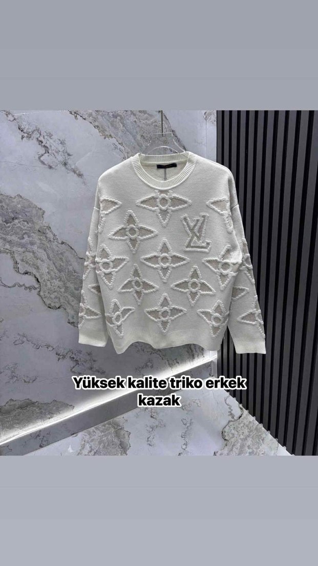 Nakış detaylı beyaz erkek triko kazak, uzun kollu ve yuvarlak yaka. Rahat ve salaş kesim, günlük kullanım için uygundur. L VE XXL MEVCUT