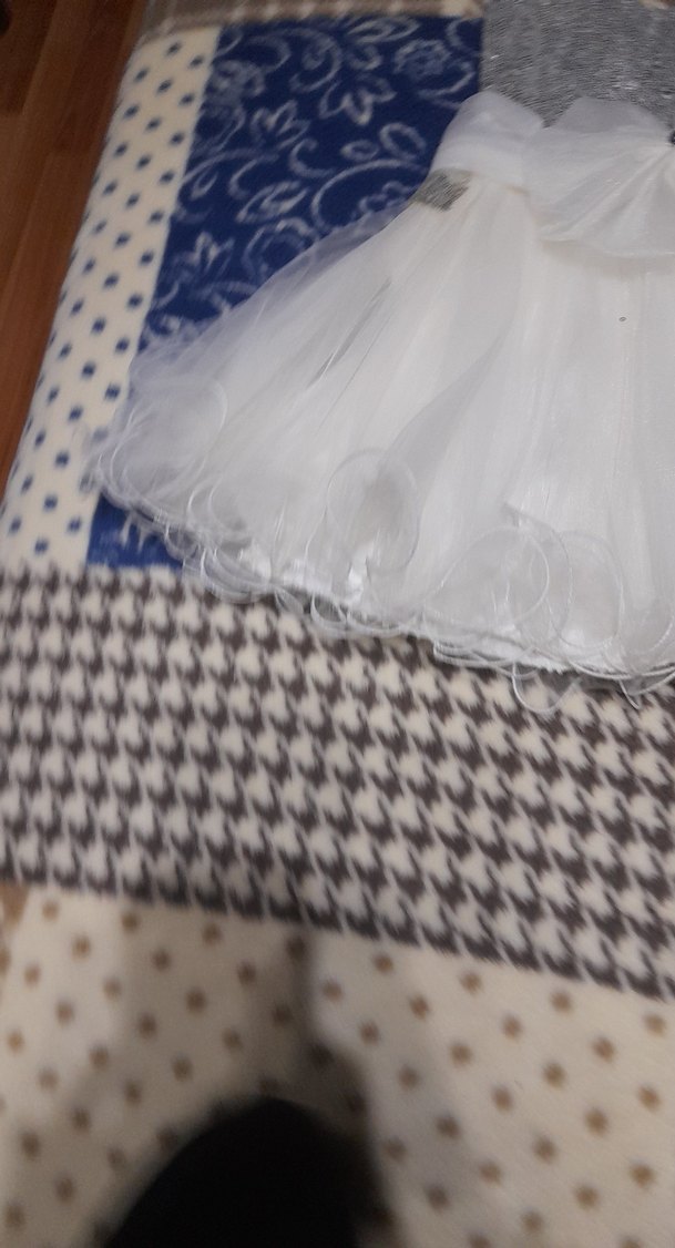 Beyaz sentetik kumaştan, nakışlı desenli ve fırfırlı detaylara sahip, bohem ve şık kesim kız eteği.