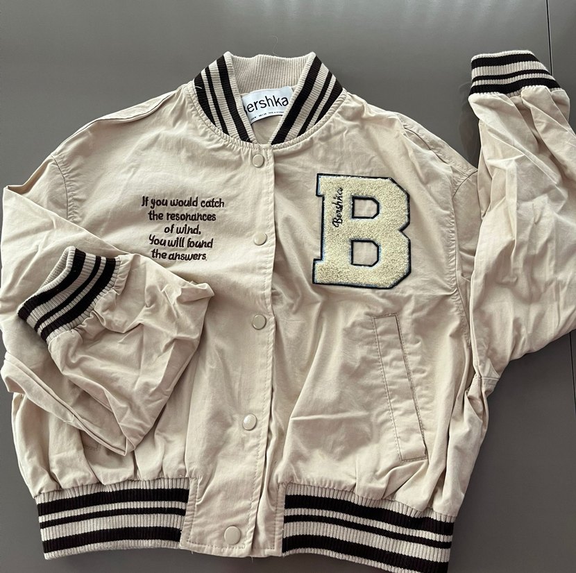 Pamuklu beyaz bomber ceket, uzun kollu ve bol kesimdir. Nakış detaylı, düğmeli ve bisiklet yaka tasarıma sahiptir. Rahat günlük stil için uygundur.