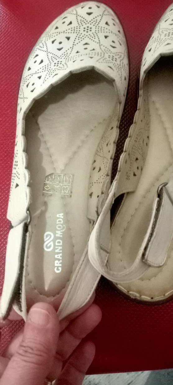 Nakış detaylı, bej dolgu topuk kadın sandalet. Ayarlanabilir cırt cırtlı bant ile günlük kullanıma uygun vintage tarzı. hakiki deri marka temsili