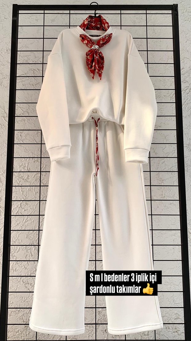 Beyaz renkli, pamuklu ve nakış detaylı kadın eşofman takımı. Regular fit ve uzun boy, yuvarlak yaka ve askılı kollu rahat bir tasarıma sahip. 3 iplik içi kumaştan üretilmiştir. S m bedenler isteyene post açılır