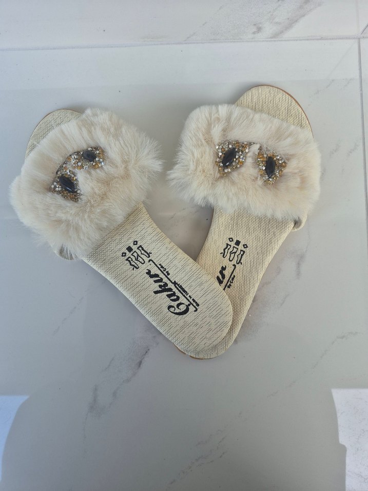 Beyaz Nakışlı Kadın Terlik