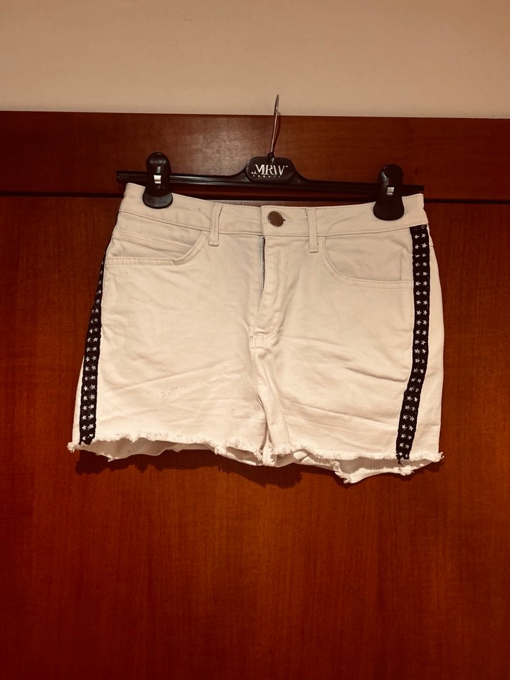 Nakış detaylı, kemerli beyaz pamuk mini şort, rahat ve trend sokak stili için uygundur. ✨
