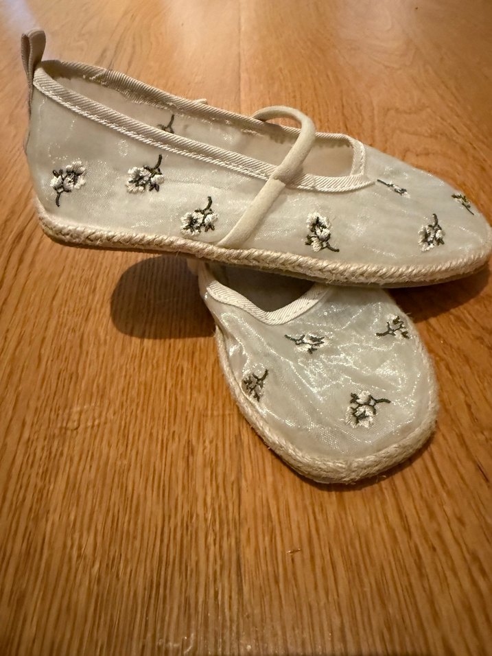 Nakışlı çiçek detayları ve dantel süslemeli beyaz kız babetleri, yumuşak kauçuk tabanlıdır. Bohem tarzıyla retro, hippie havası verir.