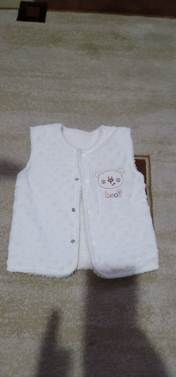 Beyaz, düğmeli kız bebek polar yelek, nakışlı ayı figürü ve rahat kesimle tasarlanmıştır. Temiz kullanılmış ve sorunsuzdur. İçi yumuşak Polar kumaştır. Çıtçıtlı modeldir. Ürünün ölçüleri fotoğrafta mevcuttur. Ölçülere göre alım yaparsanız sevinirim. Ürünün iadesi yoktur. PTT kargo ile gönderilir.