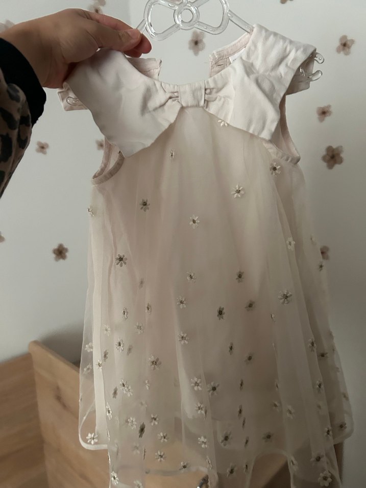 Nakışlı çiçek desenleri ve fırfır detaylı, askısız beyaz kız çocuk elbisesi. Rahat kesimli, kısa kollu ve pastel tonlarda, klasik şıklık ve bohem tarzı bir arada sunar 1 kez doğum gününde kullanıldı .
