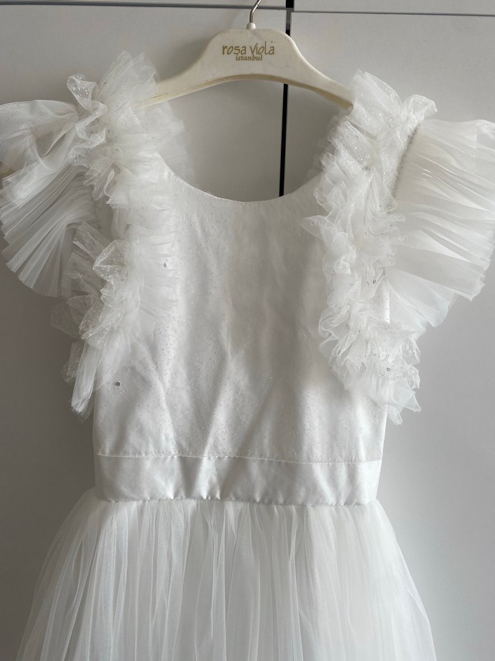 Beyaz Nakışlı Kız Çocuk Elbisesi gelinlik