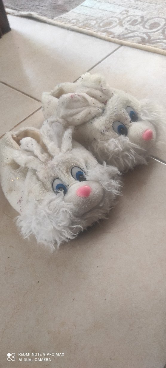 Beyaz nakışlı detaylara ve yumuşak kürk aksanlara sahip kız çocukları için fleece ev terlikleri. Bohem ve retro tarzı yansıtan sevimli tavşan tasarımına sahiptir.
