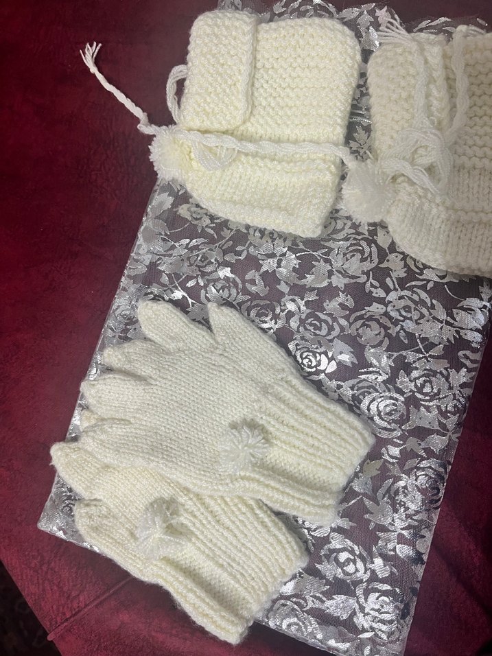 Beyaz renkli, nakış desenli ve klasik tarzda kız çocukları için örgü eldivenlerdir.