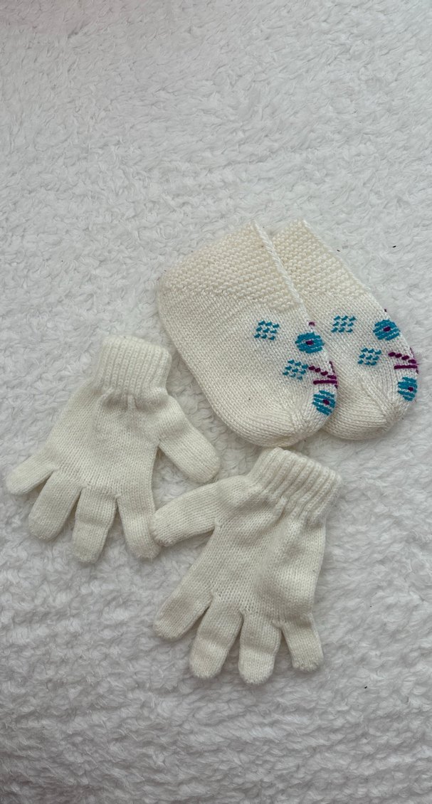 Renkli nakış detaylı beyaz kız çocuk örgü eldivenler, sade ve bohem tarzı bir arada sunar. Yumuşak örgü kumaştan üretilmiştir.