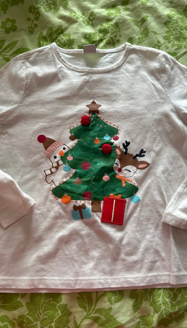 Pamuklu, ince dokuma, uzun kollu beyaz kız çocuk tişörtü, yuvarlak yaka ve dokulu baskılı desenle süslenmiştir.