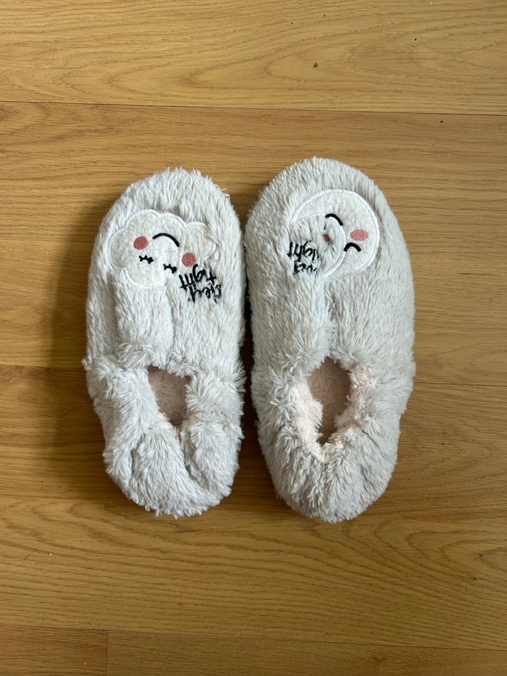 Beyaz Nakışlı Kız Peluş Ev Terliği