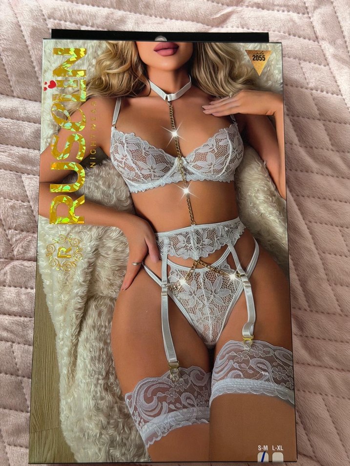 S/M - L/XL Nakışlı dantel detaylı, beyaz bohem tarzda iç giyim seti. Sütyen, jartiyer ve uyumlu mini çoraplar içerir. ✨