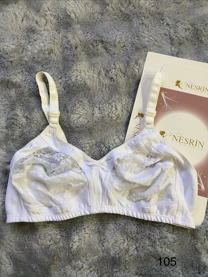 Beyaz, parlak nakışlı detaylara sahip mini sütyen. Ayarlanabilir askılı ve rahat, klasik tarzda NESRIM ürünü. ✨ 105 beden