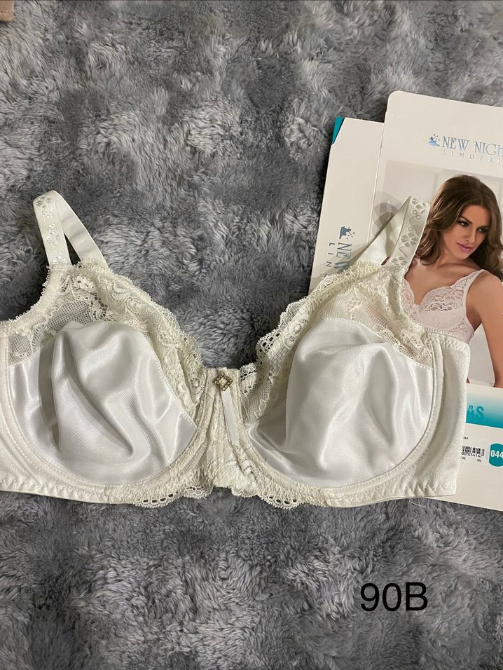 Nakışlı detaylara sahip beyaz sütyen, modern klasik tarzda ve 90B bedenindedir. Normal uzunlukta, rahat ve yumuşak kumaftan üretilmiştir.
