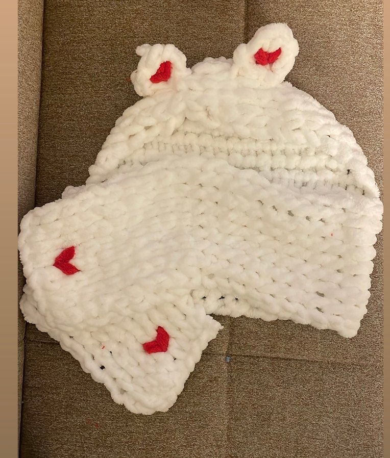 Beyaz nakışlı örgü çocuk bere ve atkı seti, yumuşak ve sıcak kumaştan yapılmıştır.