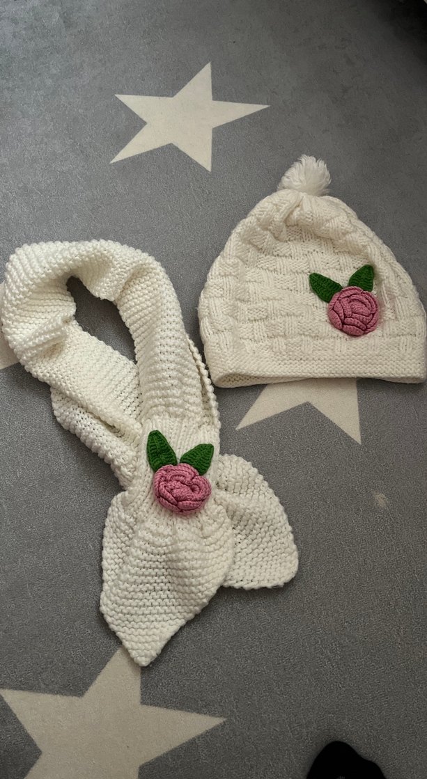 Beyaz renkli, nakış işlemeli örgü çocuk bere ve atkı seti, yumuşak dokusu ile sıcak tutar. ❄️6-7 yaş uyumludur .