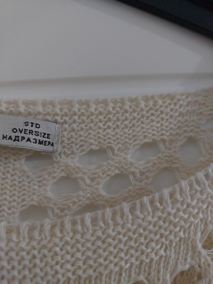 Nakışlı desenli beyaz örgü kadın espadril, kama topuklu ve rahat bohem tarzda. Üzerinde oversize etiketi bulunur.