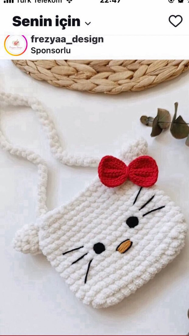 Beyaz örme kız çantası, renkli nakış detayları ve kırmızı fiyonk süsüyle bohem tarzda.