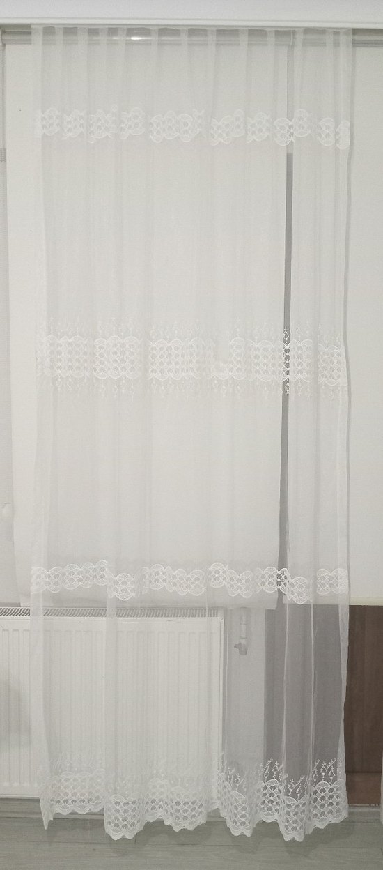 Beyaz Nakışlı Tül Perde