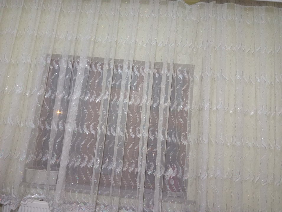 Beyaz renkte, nakışlı desenli, hafif ve klasik tarzda tül perde. adet fiyatı marka temsili elimde 4 adet var petek üstü genişlik 3 buçuk metre