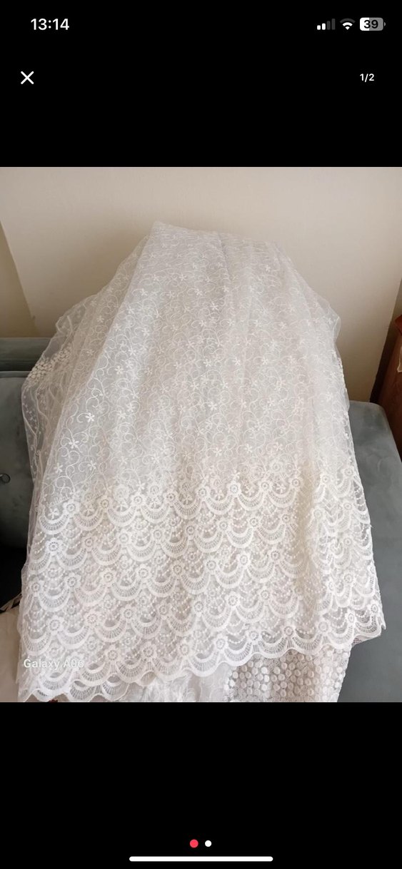 Hafif ve şeffaf beyaz tül perde, zarif nakışlı ve geleneksel desenlidir. Tam pileli 190 yükseklik eni 145