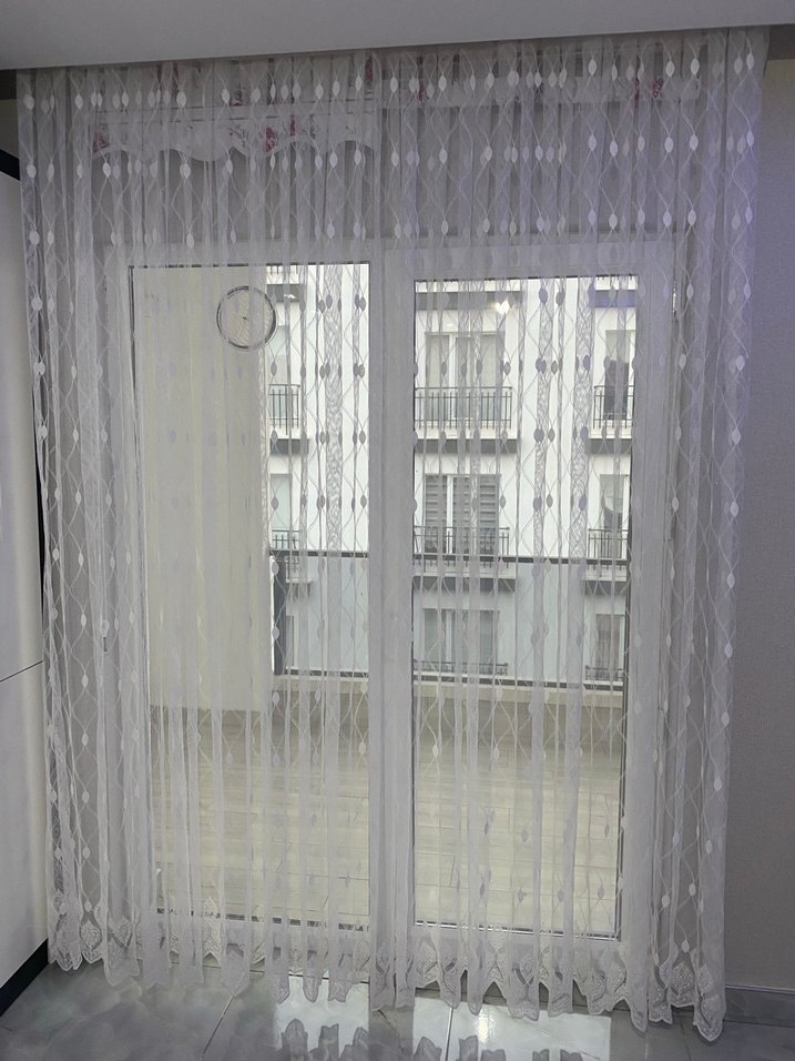 Beyaz Nakışlı tül ve 2 adet fon perde