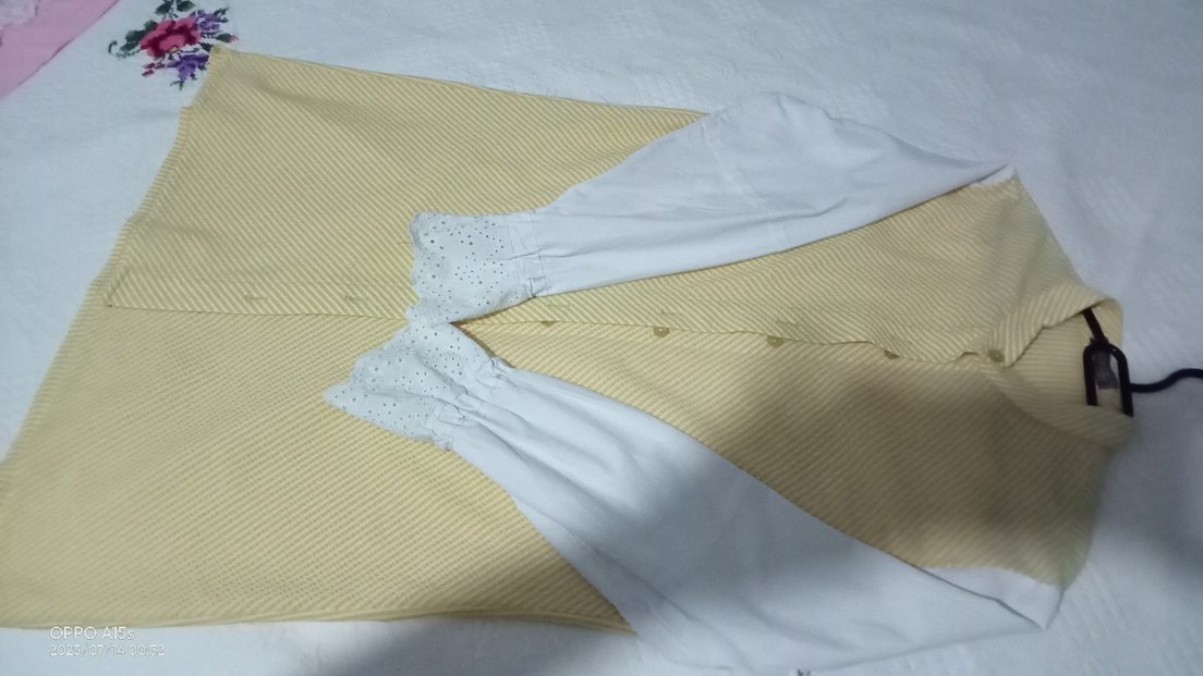 Beyaz sarı, uzun kollu ve fistolu detaylı manşetlere sahip, minimalist ve günlük kullanıma uygun şık bir model.iki kol arası 57 cm boyu 88 cm