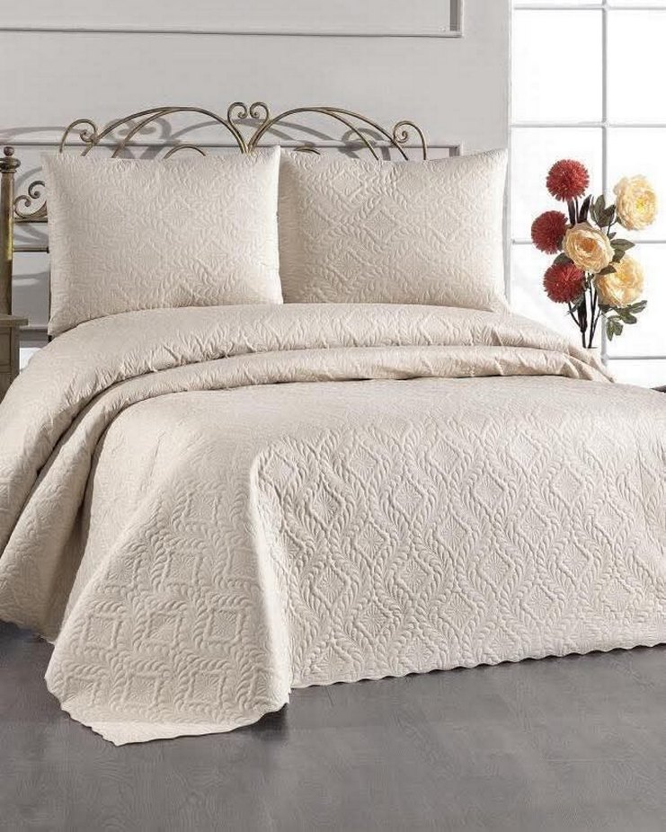 Nakışlı desenlere sahip beyaz yatak örtüsü, odanıza zarif ve sade bir görünüm kazandırır. Yumuşak dokusu konfor sağlar. ️ Rosa 2 Ultrasonic pamuklu çift kişilik 3 parça yatak örtüsü 230×240 cm