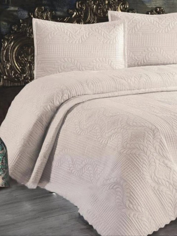 İnce nakışlı desenlere sahip beyaz yatak örtüsü ve uyumlu yastık kılıfları, klasik ve zarif bir görünüm sunar. ️ Rosa Ultrasonic pamuklu çift kişilik 3 parça yatak örtüsü 230×240 cm