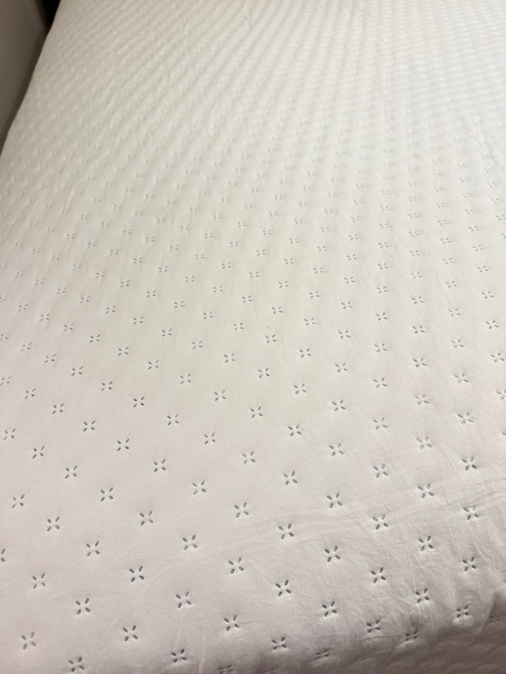 Hafif gri tonlarda, zarif nakış detaylarına sahip beyaz yatak örtüsü. Doku olarak yumuşak ve sade bir tasarıma sahiptir. ️bır kez kullanıp yıkadım
