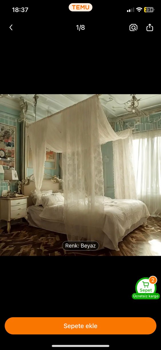 Beyaz, nakışlı detaylara sahip hafif ve şık yatak perdesi, yatak odası dekorunu tamamlar. ️