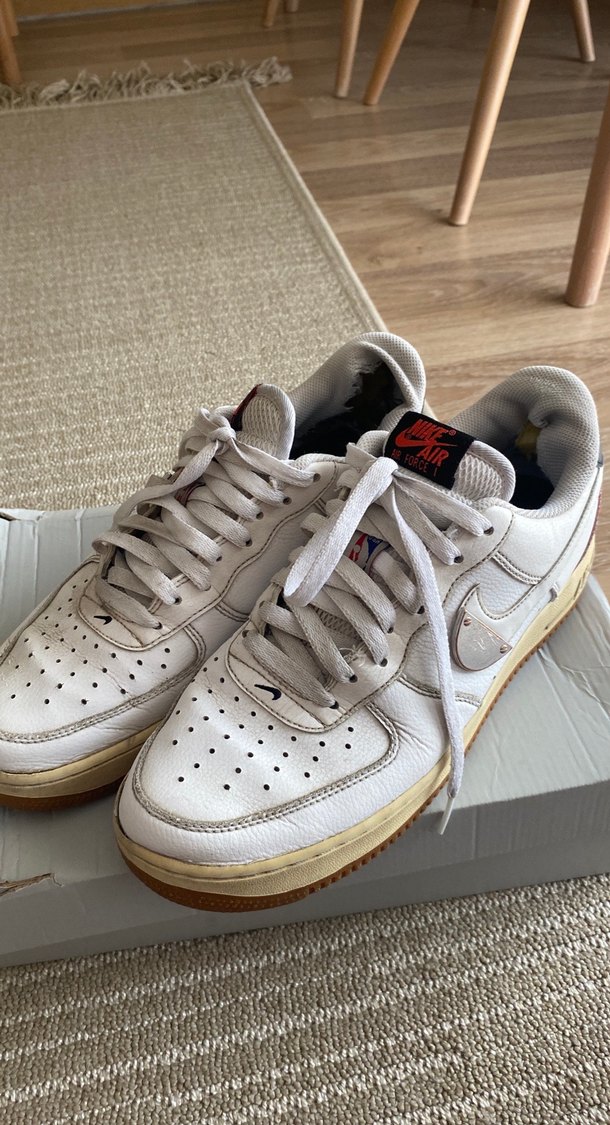 Beyaz Nike Air erkek spor ayakkabıları, düz taban ve bağcıklı tasarıma sahip. Kusurları fotoğrafta mevcuttur. Yüklediğim diğer spor ayakkabılarrı berabar alırsanırz indirim yapabilirim. Elimden çıkarmak için uygun fiyata koyuyorum.