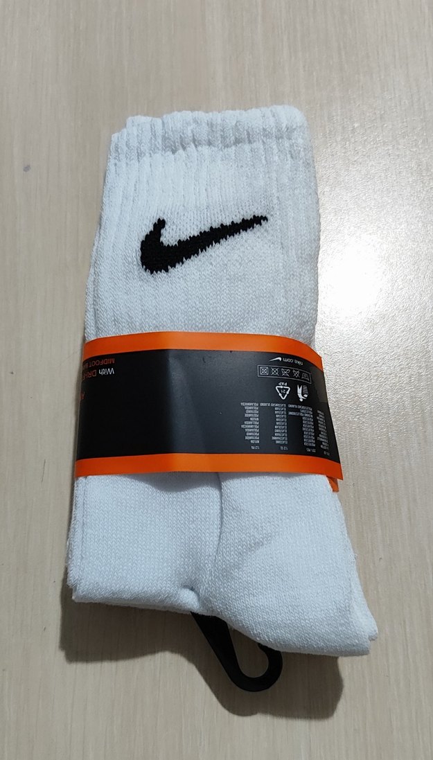Beyaz renkli, siyah baskılı Nike logosuna sahip, erkek çocuklar için midi boy, sıkı oturan çoraplar. ⚽ 3 lü pakettir