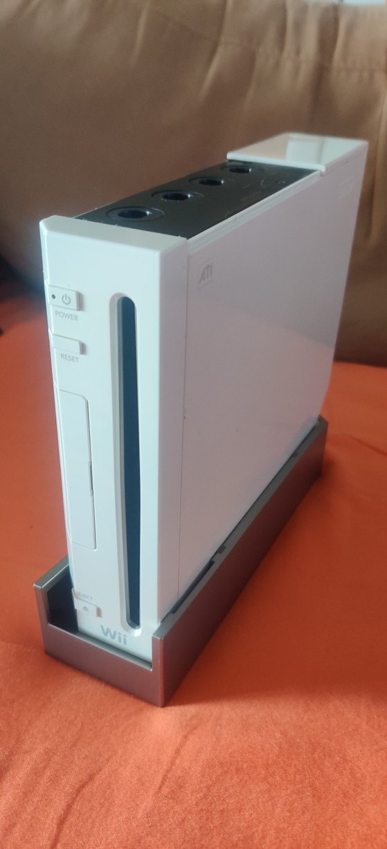 Nintendo Wii Konsol. Kasa ve dikey standı var, başka bir parça yok yanında. Temiz ve sorunsuzdur. #wiikonsol, #wii.