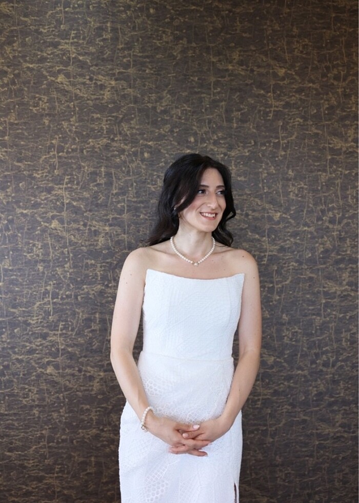 kendi nişanımda bir kez giydim, özel dikim kumaşı keten dantel 167 boy 58 kiloya dikildi, midi ile uzun arasında yandan diz üstüne kadar yırtmacı mevcut