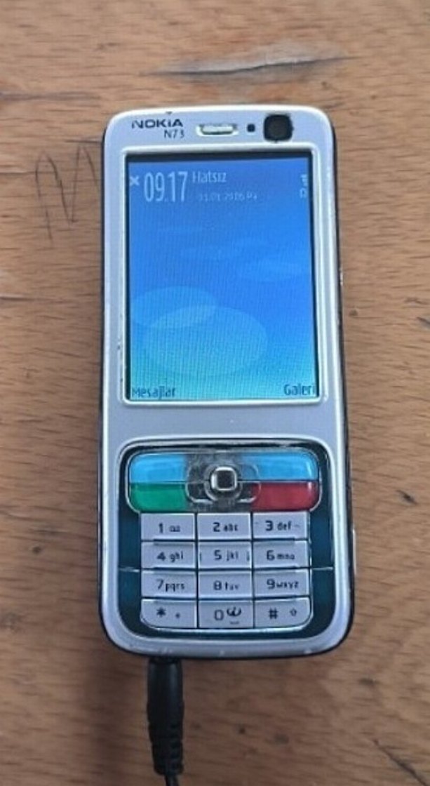 Beyaz renkli Nokia N73, klasik tasarımlı, renkli ekranlı ve fiziksel tuş takımlı cep telefonudur. Mesajlaşma ve temel multimedya özellikleri bulunur.