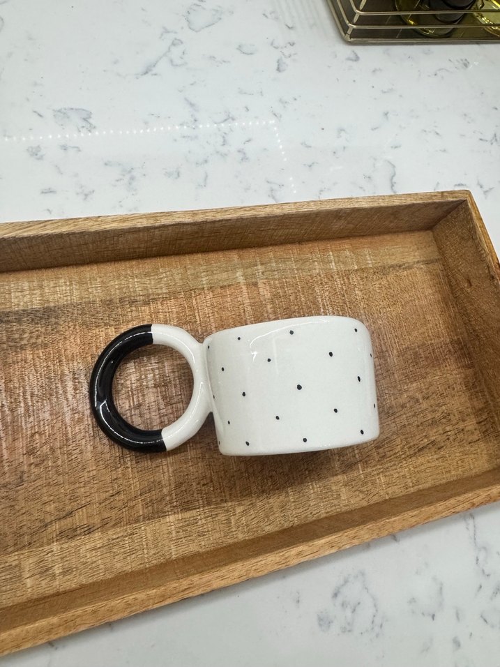 Beyaz Noktalı Siyah Kulplu Seramik Fincan